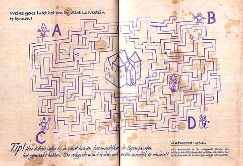 Het Regionaal Bureau voor Toerisme Rivierenland heeft een boekje ontwikkeld bij de GPS-geuzentocht rond kasteel Loevestein, een speurtocht voor kinderen op en om het kasteel. Dus ik maakte voor hen de verschillende cartoons, raadsels en spelletjes, alles expres lekker kliederig (maar wel historisch verantwoord). De schitterende opmaak van voorkant en binnenwerk is verzorgd door Vijfnulacht in Dordrecht.