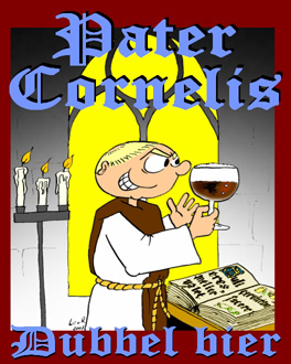 Een plaatje uit den ouden doosch... Deze 'Pater Cornelis' is getekend als etiket voor flessen zelfgebrouwen bier, uiteraard geïnspireerd op Belgische abdijbieren. Inmiddels is de hier geportretteerde thuisbrouwer op grotere schaal bier gaan maken, en zijn brouwsels zijn verkrijgbaar als Rooie Dop.