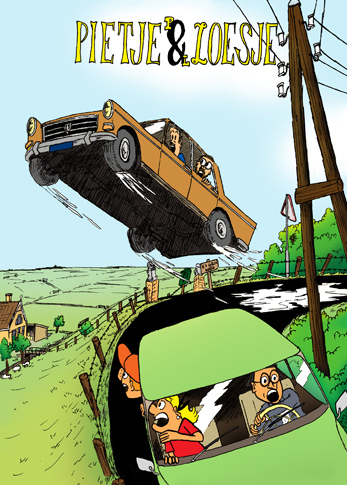 Deze twee striphelden zijn inmiddels bekend van hun strip voor het Gorcums Museum, maar eerder tekende ik al een aantal grote platen, als "voorkanten" van niet bestaande albums. Wie weet teken ik die ook nog wel een keer!